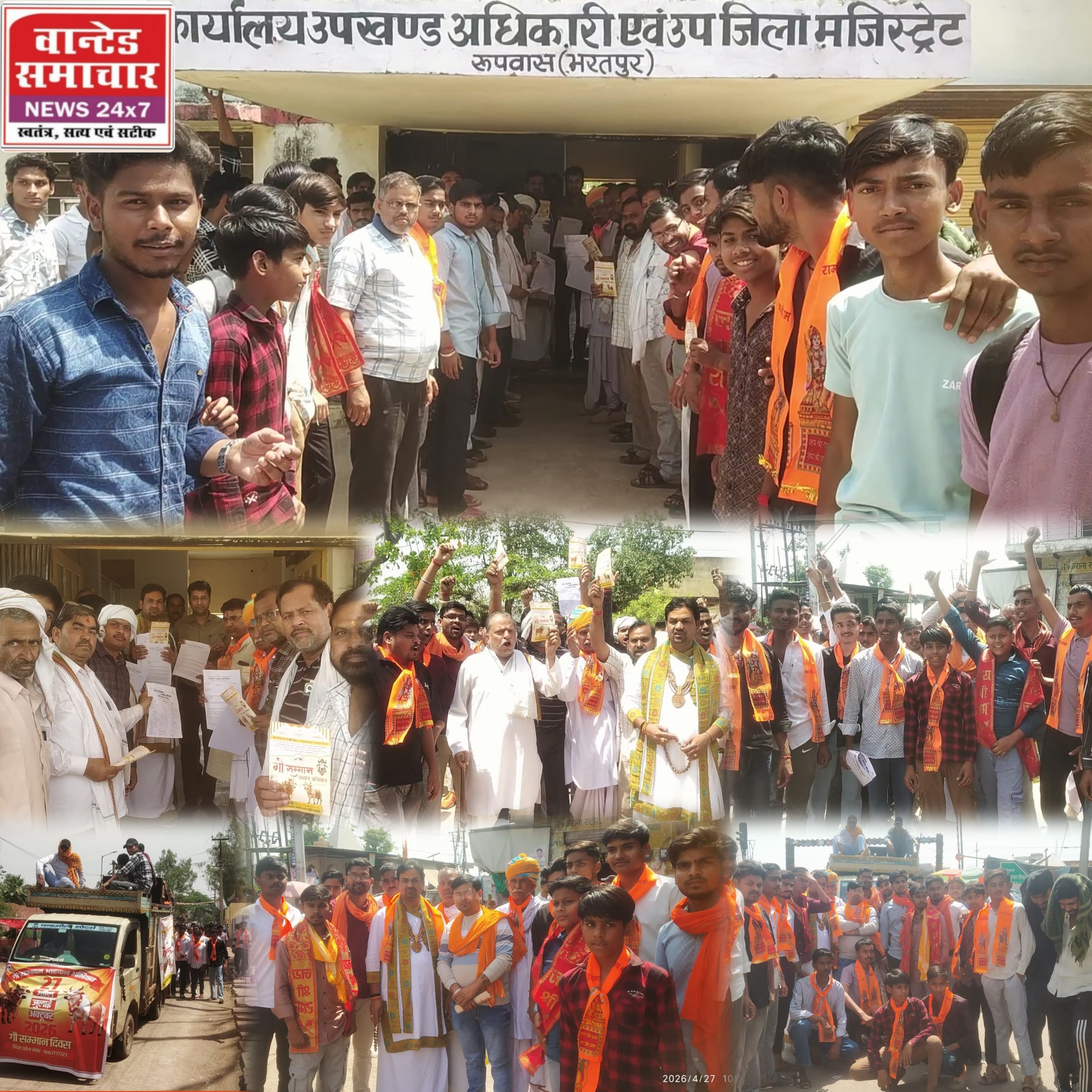 रूपवास कस्बे सहित क्षेत्र के सैंकड़ों गौ भक्तो ने गौ संरक्षण को लेकर चलाए जा रहे गौ सम्मान आह्वान अभियान के अंतर्गत सोमवार को रूपवास कस्बे के हनुमान मंदिर से समाजसेवी प्रिंस सिंघल के नेतृत्व में रैली निकाल उपखण्ड अधिकारी विष्णु बंसल को मुख्यमंत्री,राज्यपाल, प्रधानमंत्री व राष्ट्रपति के नाम का ज्ञापन दिया। रैली में बड़ी संख्या में गौ भक्तों और स्थानीय नागरिकों ने भाग लिया। रैली हनुमान मंदिर से होते हुए स्टेशन मार्ग, मेला मैदान होते हुए गौ माता को राष्ट्रीय माता घोषित किए जाने के नारे लगाते हुए उपखण्ड कार्यालय पहुंची। जहां उपखण्ड अधिकारी विष्णु बंसल को मुख्यमंत्री, राज्यपाल, प्रधानमंत्री व राष्ट्रपति के नाम का ज्ञापन दिया। दिए गए ज्ञापन में लिखा कि गौ माता का संरक्षण, संवर्धन और सम्मान के लिए ठोस कदम उठाया जाना चाहिए । इस अभियान का उद्देश्य समाज में गौ माता के प्रति सम्मान बढ़ाना और सरकार का ध्यान इस ओर आकर्षित करना है। इस अवसर पर दुर्गेश राजमुनि, ज्वाला प्रसाद, कप्तान सिंह, उदयभान शर्मा, राम गणेशिया, सन्नी खान, ऋषभ,अमित अमोरिया, कपिल चौधरी, सूरज, चिंटू बंसल, कुणाल, श्रीकेश, गोविंदा, निखिल, भोला, लोकेंद्र, सनी, हनी, उमाकांत, आयुष, दीपक, हेमसिंह, छोटू, पीयूष आदि मौजूद थे।