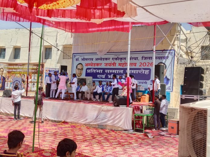 आज 14 अप्रैल 2026 क़ो ब्यावर शहर मै एकीकृत संस्था के द्वारा भीमराव अम्बेडकर जयंती क़ो सभी समाजों ने अपने अपने एरिया से हर्षोल्लास से रेलियों के रूप मै नाचते गाते बेंड बाजों के साथ शहर के बिचौ बिच से विभिन्न वाहनों के द्वारा बाबा साहब के जयकारें लगाते हुए ब्यावर के कम्पनी बाग पहुँचे जहाँ एक विशाल आयोजन किया गया जिसमे विभिन्न प्रकार के कार्यक्रम थे जिसमे मुख्य एक प्रतिभा सम्मान समारोह था समारोह मै अथिति ब्यावर के विधायक शंकर सिंह रावत, ब्यावर के उप अधीक्षक राजेश कसाना भी मौजूद रहे। समारोह मै हज़ारों लोगों की भीड़ बाजार आई। समारोह मै विभिन्न समाज के लोगों ने खूब रूचि दिखाई। जिसमे बच्चे, युवतियां, महिलाएं, बुजुर्ग शामिल थे