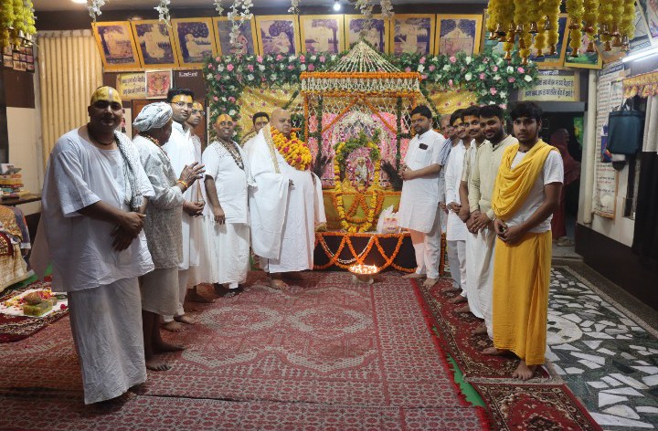 वृंदावन (विष्णु मित्तल)परिक्रमा मार्ग स्थित ललित कुंज आश्रम में चल रहे पंचदीवसीय चंदन महोत्सव के अंतिम दिवस पर आश्रम परिसर में प्रातः कालीन बेला में ठाकुर जी के समक्ष समाज गायन एवं भव्य फूल बंगले का आयोजन किया गया। साथ ही आश्रम में विराजित ठाकुर ललित मोहिनी देव जू महाराज का चंदन से भव्य श्रृंगार किया गया। इस मौके पर जानकारी देते हुए हरिदासीय संप्रदाय के आचार्य महामंडलेश्वर स्वामी राधा प्रसाद देव जू महाराज ने बताया कि अक्षय तृतीया के पावन मौके से पंच दिवसीय चंदन महोत्सव का आगाज हुआ। उन्होंने बताया कि चंदन महोत्सव में हरिदासीय संप्रदाय के आचार्य स्वामी भगवत रसिक देव जू महाराज का महोत्सव मनाया जाता है। वही उन्होंने बताया कि स्वामी भगवत रसिक देव जू महाराज हरिदासीय संप्रदाय के आचार्य स्वामी ललित मोहिनी देव जू के परम शिष्य थे। उन्होंने बताया कि स्वामी भगवत रसिक देव जू महाराज संप्रदाय के आचार्य बिहारीन देव जू महाराज के अवतार थे। उन्होंने बताया कि स्वयं जग की स्वामिनी प्रिया जी ने महाराज श्री को नित्य बिहार प्रदान किया था। उन्होंने कहा कि महाराज श्री द्वारा रचित वाणी को सभी संप्रदाय अनुसरण करते है और जो रसिक संत है उनके लिए महाराज श्री की वाणी संजीवनी बूटी से कम नहीं है।